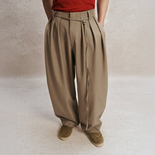 Beige Vase Wool-Blend Pants