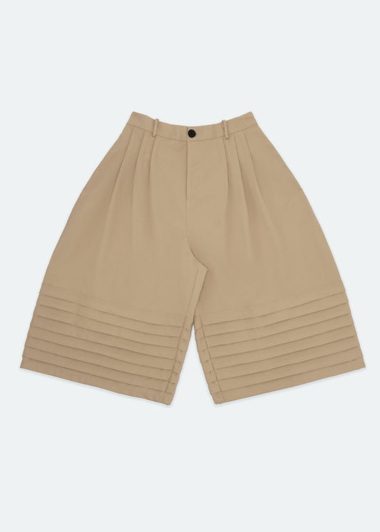 Beige Plate Culottes Pants