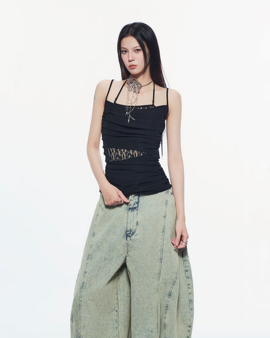 Black Aysel Lace Panel Top