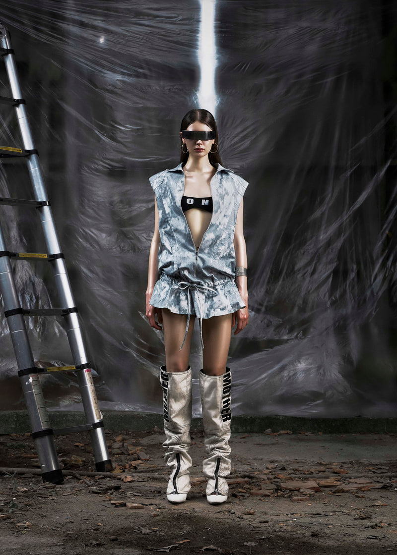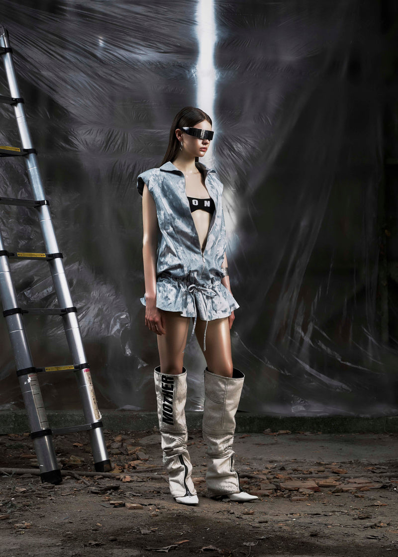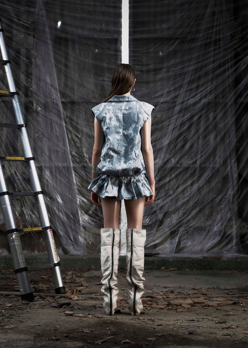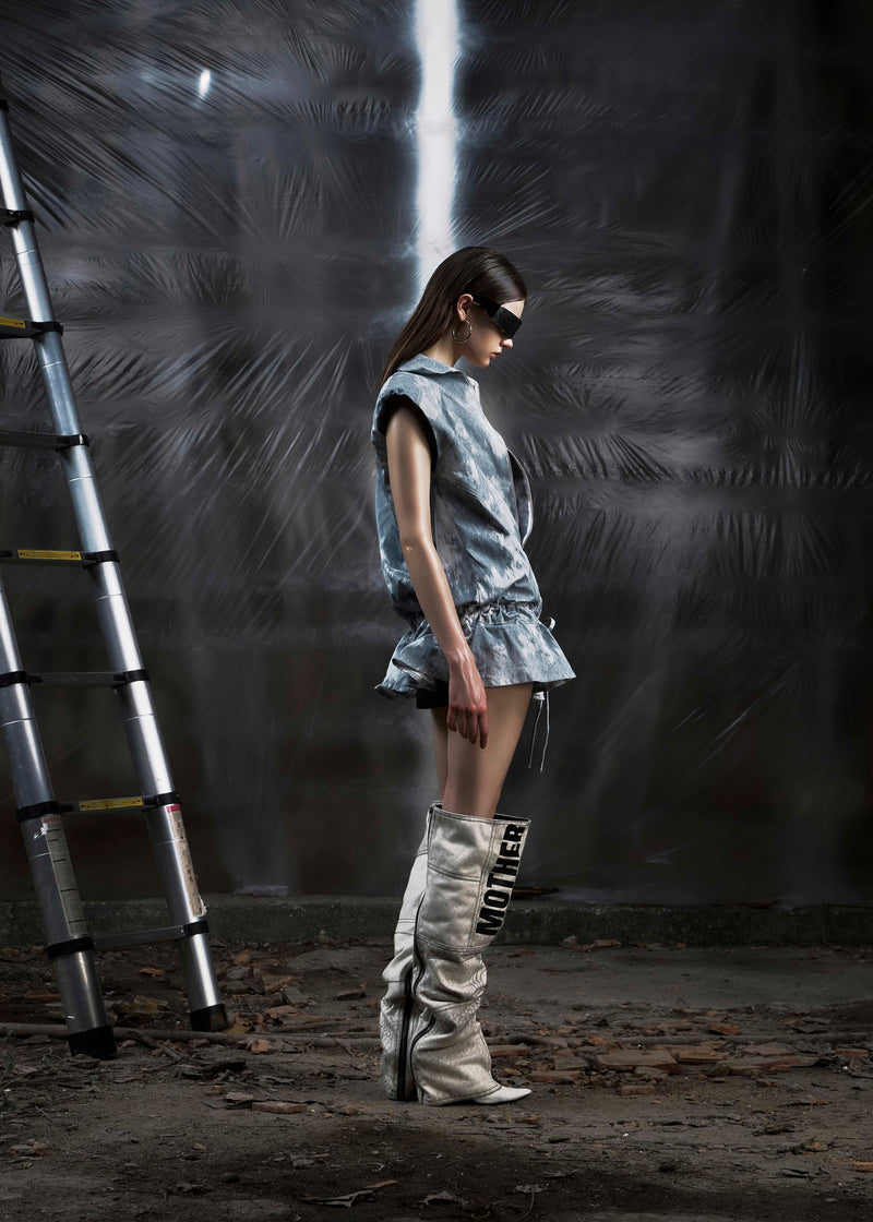 • Detail: Full-body printed pattern, loose and comfortable form, padded shoulders, zipper extending to the waistline of the dress, slightly flared dress with a tie at the waistline of the dress