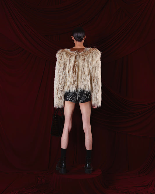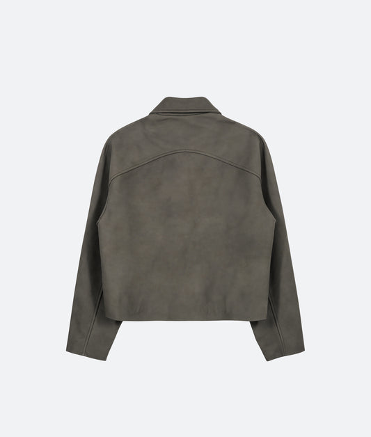 FRAGILE® Brown Cropped Leather Bomber Jacket