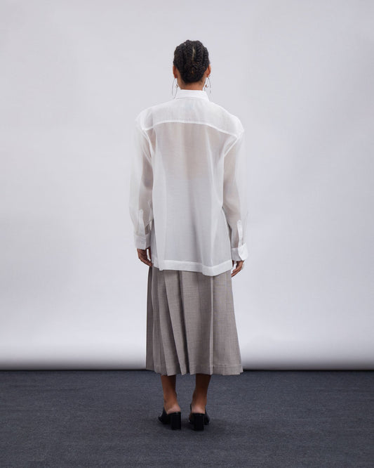 White Pleated Midi Skirt
